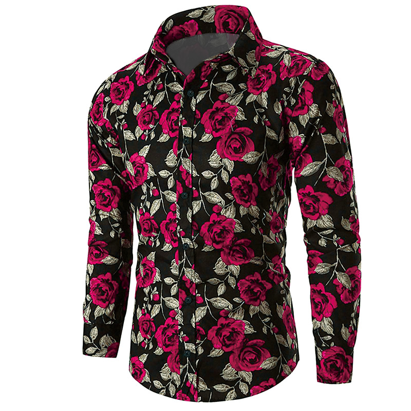 Valentine's Day Men's Rose Floral Print Shirt Button Up Shirt Long Sleeve Casual Vacation Casual Daily Weekend Spring Summer Fall Winter Turndown Print Button-Down Violet Yellow Red Blue Fuchsia