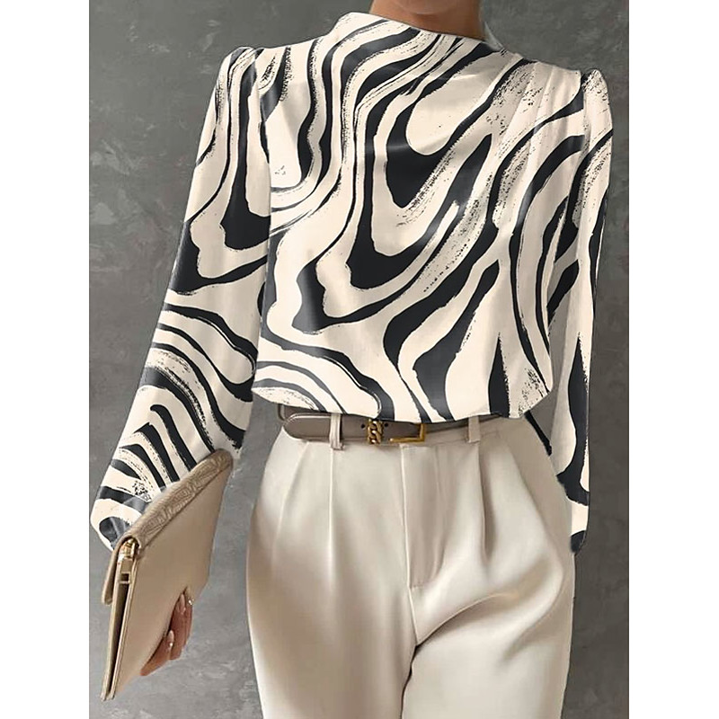 Women's Shirt Button Down Tunic Shirt Collar Long Sleeve Modern Print Regular Tops Work Black Spring Fall