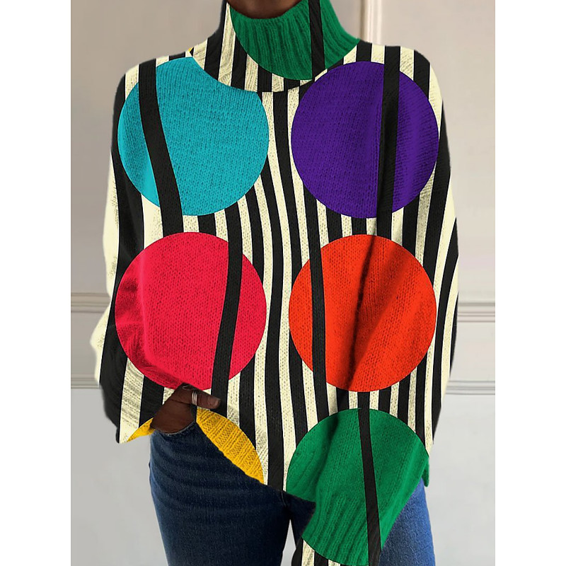 Women's Sweater Casual Soft Geometric Ribbed Turtleneck Knitted Print Long Sleeve Regular Tops Knit Outdoor Daily Weekend White Wine Fall Winter