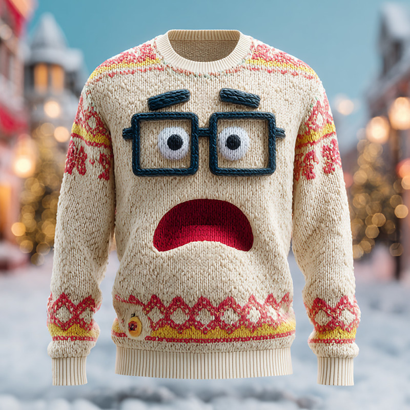Ugly Christmas Sweater Men's Graphic 3D Print Pullover Sweater Jumper Knitwear Crewneck Casual Vacation Daily Festival 3D Print Keep Warm Long Sleeve Spring Fall Winter Apricot Almond Apricot