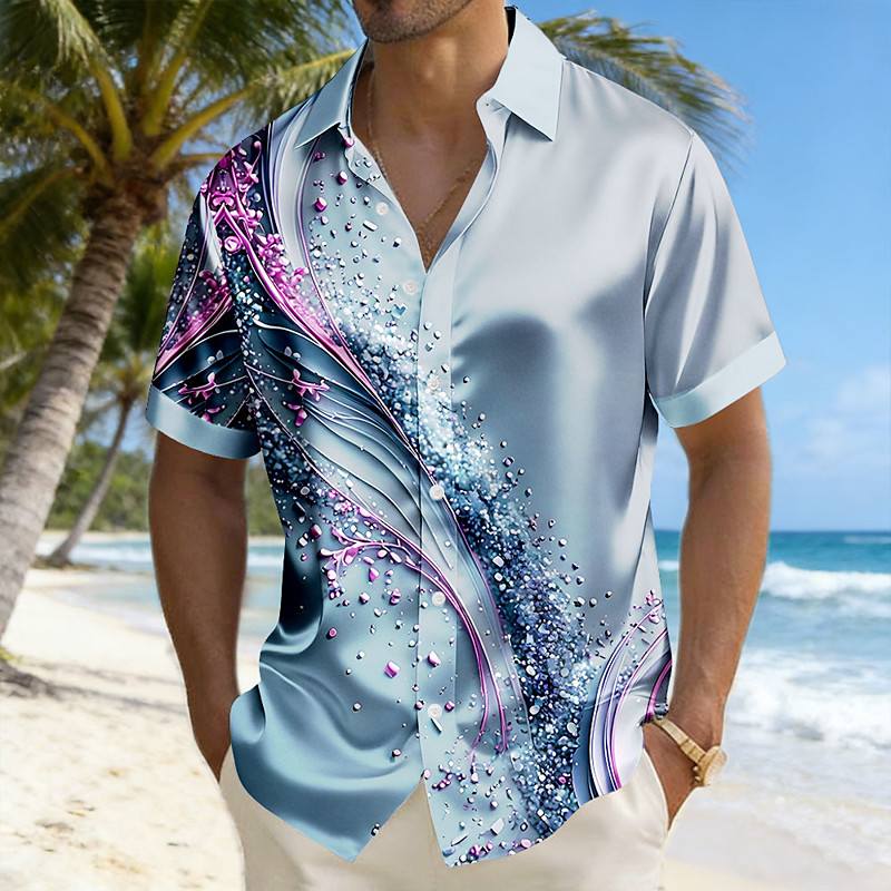 Men's Geometric Waves Abstract Art Shirt Satin Shirt Dress Shirt Short Sleeve Fashion Casual Daily Vacation Summer Spring Turndown Collared Shirts 3D Print Button Up Shirts Blue Pink Purple Green