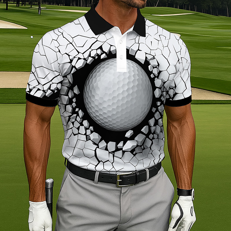 Men's Golf Polo Sports Polo Shirts Short Sleeve Polo Shirts Collared Shirts Sportswear Casual Athleisure Outdoor clothing Daily Wear 3D Print Buttons Summer Black White