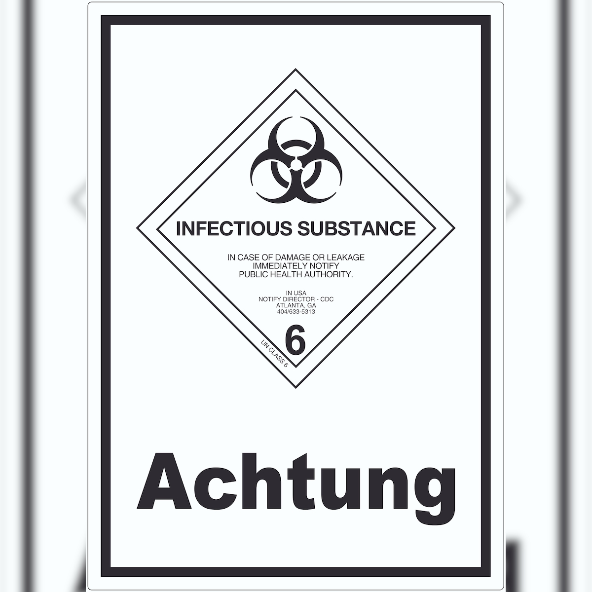 HB-Druck Aufkleber Ansteckungsgefahr Achtung Infectious Substance A4 (210x297mm)