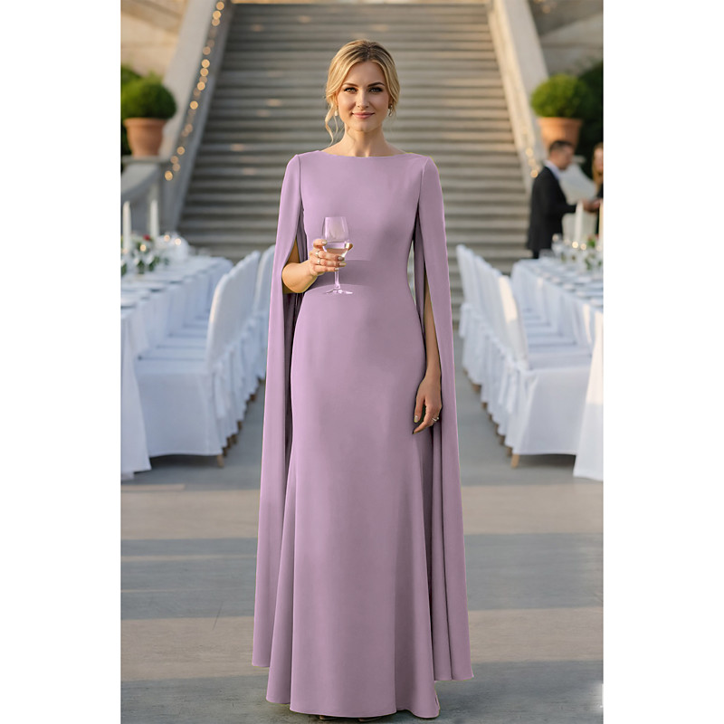 Sheath Column Floor Length Formal Dresses Evening Gown Cape Dress Ball Gown with Cape Evening Gown Formal Dress Elegant Celebrity Style Long Sleeve Boat Neck Garden Party Wedding with Solid Color