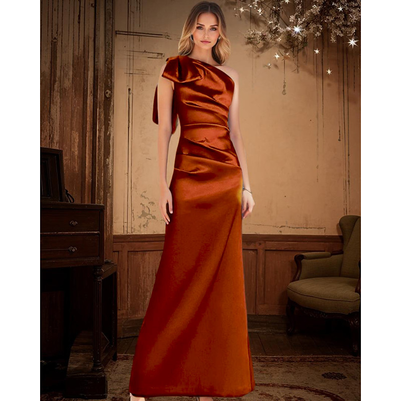 Mermaid Trumpet Ankle Length Prom Dresses Evening Gown Ball Gown Formal Dress Elegant Sleeveless One Shoulder Formal Wedding Guest Satin with Bow(s) Slit