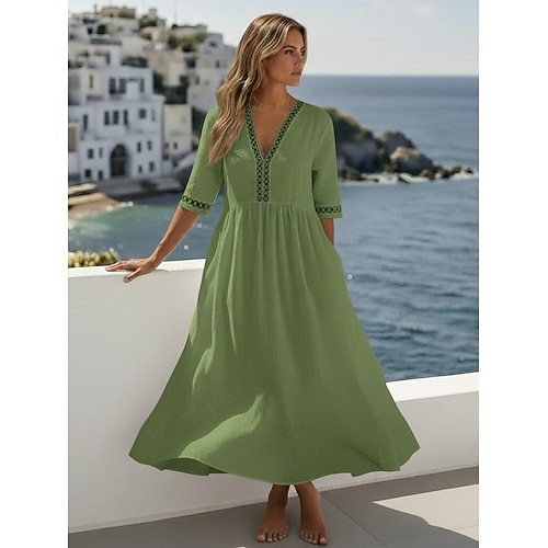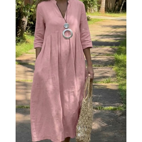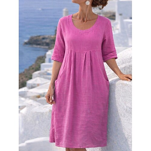 Per donna Abito Midi 100% cotone Abito a Tubino Abiti in cotone e lino Vestito Casual Essenziale Classico Casual Quotidiano All'aperto Vacanza Vestibilità comoda Semplice Mezza Manica Scollo a V