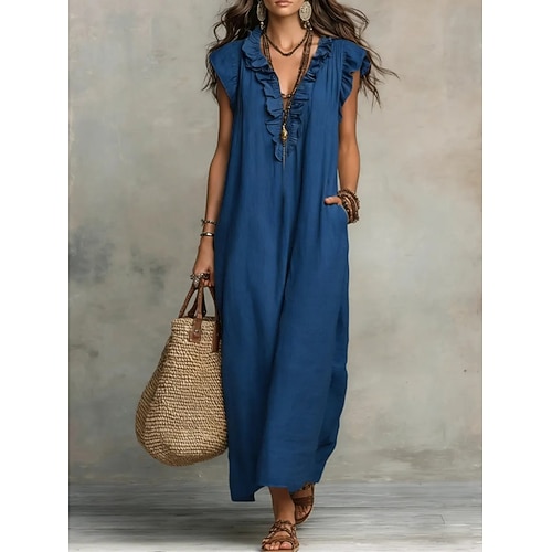 Per donna Abito maxi Finto cotone e lino Vestito Casual Abito in cotone Vestito Canotta Elegante Moda Moderno All'aperto Vacanza Uscire Vestibilità comoda Semplice Senza Maniche Scollo a V Blu Rosa