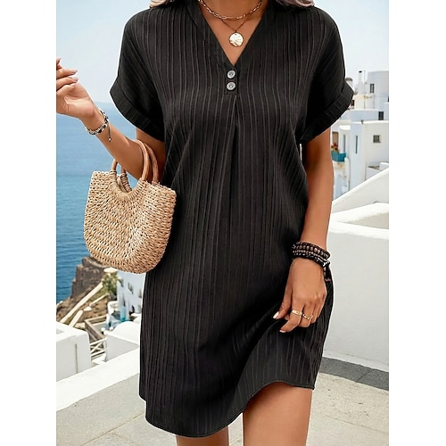 Per donna Mini abito Vestito Casual Vestito T-Shirt Abito Estivo Essenziale Classico Quotidiano Vacanza Vestibilità comoda Semplice Manica Corta Scollo a V Blu Nero Bianco Verde chiaro Estate