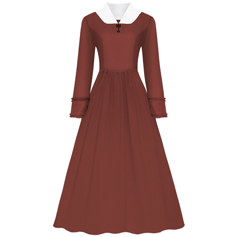 Book Week 2026 19th Century 1800s Prairie Dress Bonnet and Apron Set Long Sleeves Pioneer Fancy Dress Women's Halloween Carnival School Event Dress Up Historical reenactment Adults' Dress Apron Hat