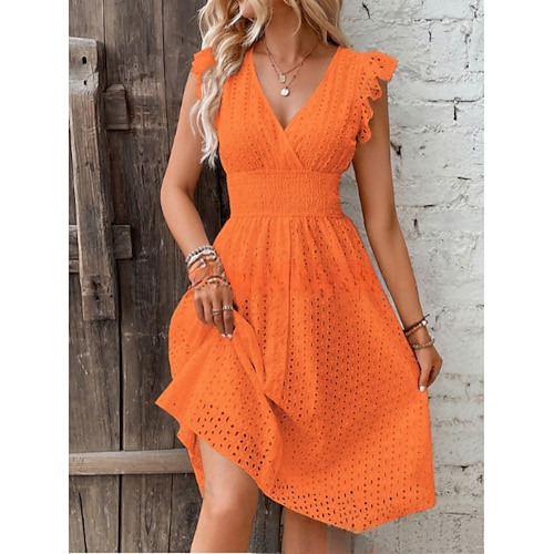 Per donna Mini Abito Vestito Estivo Abito Estivo Casual Quotidiano Vestibilità regolare Tinta unica Manica Corta Scollo a V Nero Bianco Blu marino Azzurro cielo Estate