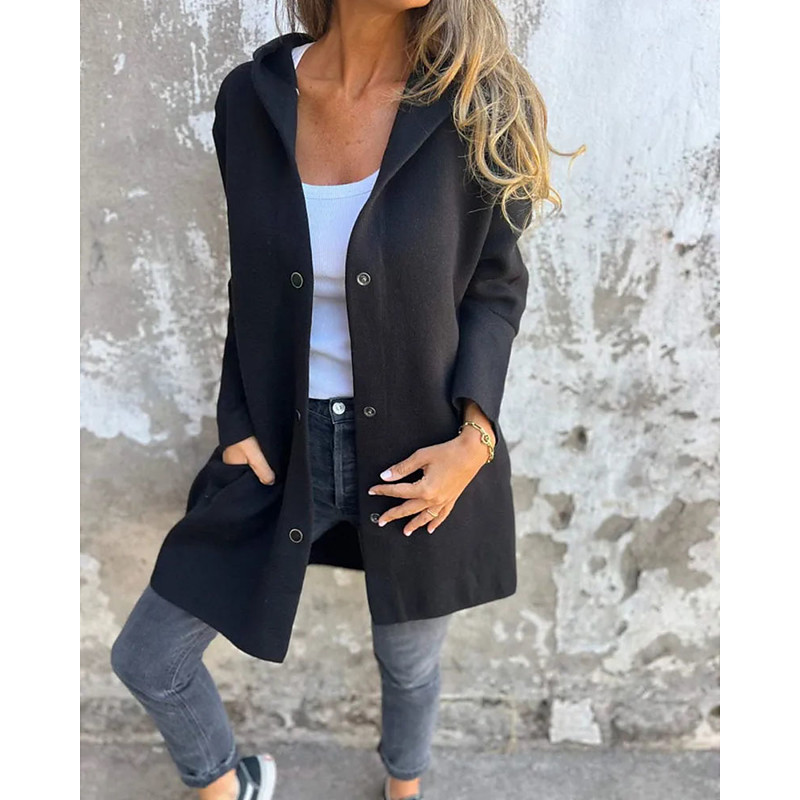 Women's Winter Coat Coat Warm Comfortable Buttons Fashion Casual Plain Vacation Street Casual Daily Wear Long Hooded Regular Fit Long Sleeve Outerwear Black Red Blue Fall Winter