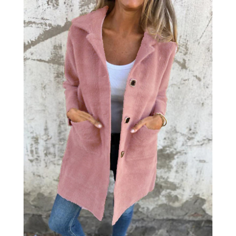 Women's Winter Coat Coat Warm Comfortable Pocket Buttons Elegant Casual Plain Vacation Street Casual Daily Wear Long Turndown Regular Fit Long Sleeve Outerwear Black Pink Blue Fall Winter