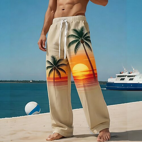 Per uomo Albero di Cocco Colore sfumato Piante Tropicali Pantaloni Pantaloni casual Pantaloni Larghi Misura del girovita medio Hawaiano All'aperto Vacanza Abbigliamento mare Coulisse Coulisse