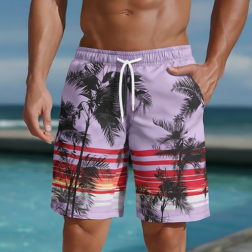 Per uomo Albero di Cocco A righe Piante Tropicali Costumi da bagno Costumi da bagno Pantaloncini da bagno Pantaloncini da Surf Misura del girovita medio Hawaiano Vacanza al Mare Tasche Laterali