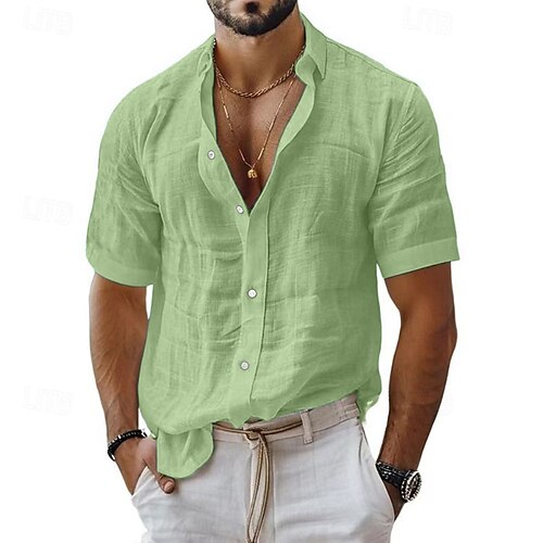 Per uomo Camicia Camicia di lino Camicia casual Camicia con Bottoni Camicia di cotone Semplice Vacanza Streetwear Nero Bianco Rosa Blu Manica Corta Collo ripiegato Estate Abbigliamento