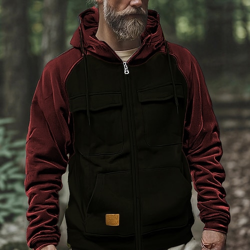 Per uomo Felpa con cappuccio Felpa con cappuccio a zip intera Nero Rosa Vino Verde militare Blu Reale Con Cappuccio Blocco di colori Patchwork Tasca Sport Outdoor Quotidiano Ferie Poliestere
