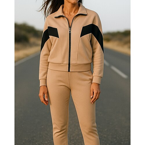 Per donna Felpa con zip Tute da ginnastica da salotto Tuta da 2 pezzi con tasca Blocco di colori Completo Abbigliamento Autunno Nero Bianco Spandex Escursionismo Lavoro All'aperto Manica Lunga Sport