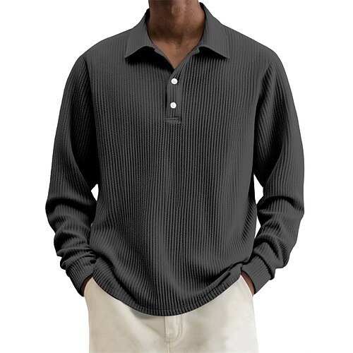 Per uomo Camicia Camicia a nido d'ape Camicia casual Camicia vintage Camicia con Bottoni Nero Blu marino Verde Grigio Manica Lunga Testurizzato Bavero Casuale Quotidiano Blocco di colore Abbigliamento