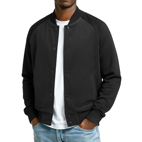 Per uomo Maglia Nero Blu marino Marrone Cachi Grigio chiaro Colletto Mao Blocco di colori Jacquard Patchwork A coste Testurizzato Sport Outdoor Quotidiano Ferie Poliestere Streetwear Essenziale