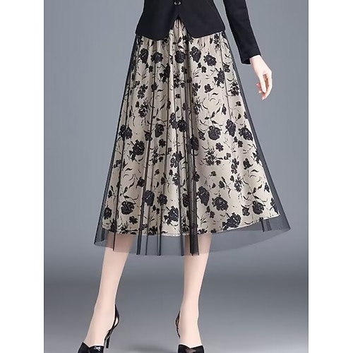 Per donna Gonna da vacanza Moda Casual Midi Vita Alta Gonne Floreale Stratificato Stampato Micro-elastico Quotidiano Streetwear Nero Estate Poliestere