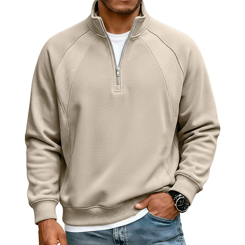 Men's Polo Shirts Quarter Zip Polo Daily Wear Date Quarter Zip Long Sleeve Fashion Basic Plain Zipper Spring Fall Regular Fit Blue Apricot Black White Red Navy Blue Polo Shirts
