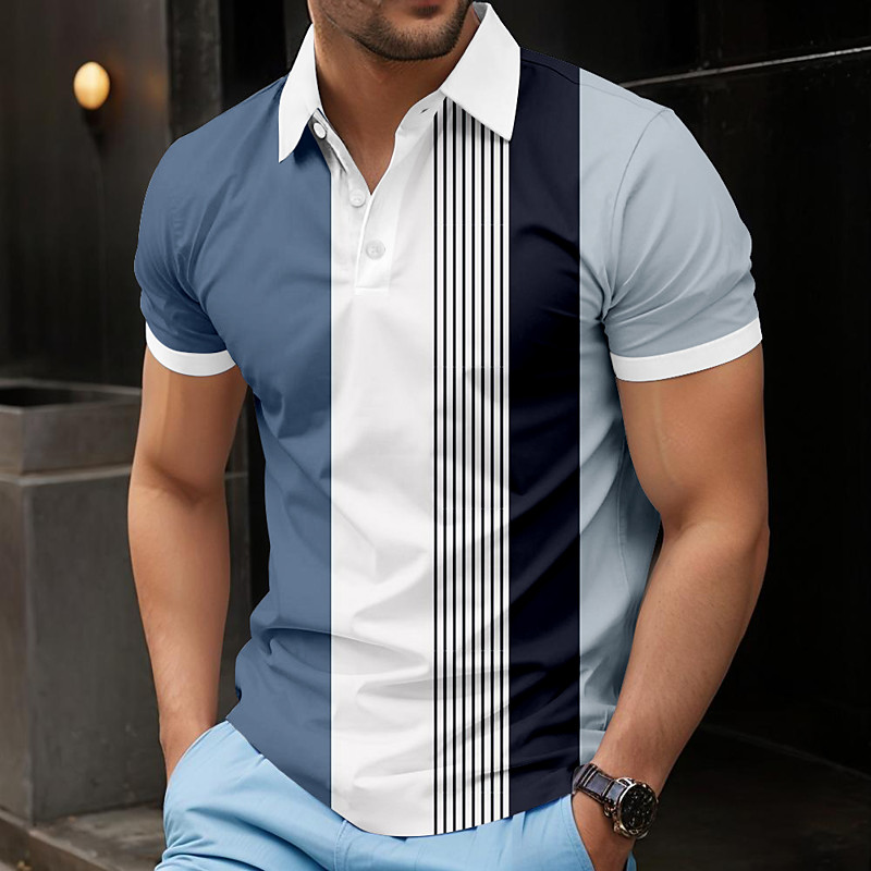 Men's Geometic Golf Sports Polo Shirts Short Sleeve Polo Shirts Collared Shirts Sportswear Athleisure Buttons Summer Black White Blue