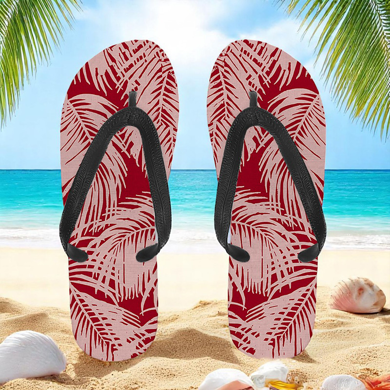 Men's Blue Leaf Printed Flip Flops – Tropical Stylish Style for Beach Vacations, Island Hopping Beachside Dinners