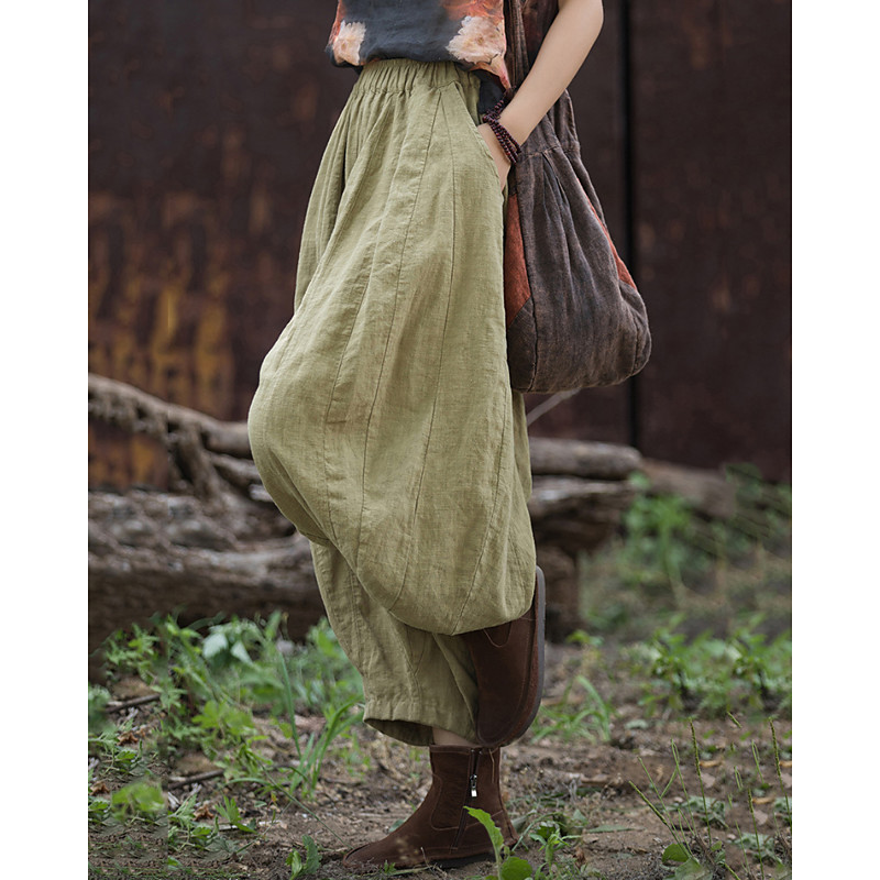 Women's Cotton Linen Pants Chinos Vacation Streetwear Basic Ankle-Length Medium Waist Plain Pocket Elastic Waistband Comfy Comfort Inelastic Daily Outdoor Street rice white Rust Sage Brown Fall Winter