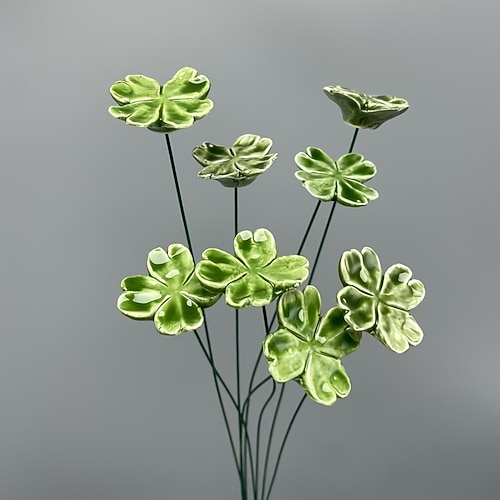 8 pezzi, benedetto dalla fortuna, speranza, fede e amore, quadrifoglio in ceramica fatto a mano, fiori in ceramica portafortuna, ceramica fatta a mano, mai sbiaditi, fiori in ceramica eterni,
