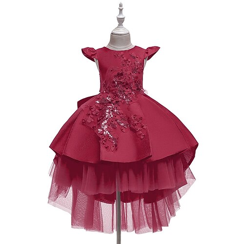Abito da damigella d'onore bambina Ragazze Abito formale Abiti da sposa Feste Matrimonio Formale Adorabile Principessa Dolce Patchwork Rete Tinta unica Maniche Corte Girocollo Rosa Rosso Dai 4 anni