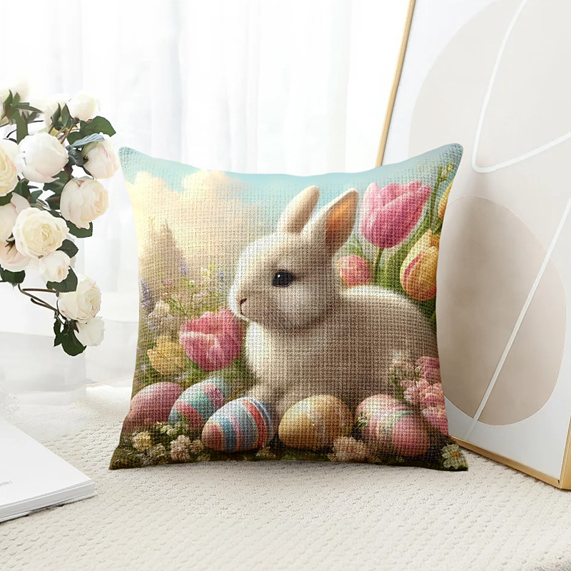 Easter Decorative Toss Pillows Cover 1PC Bunny Eggs Soft Square Couch Cushion Case Pillowcase for Bedroom Livingroom Sofa Chair