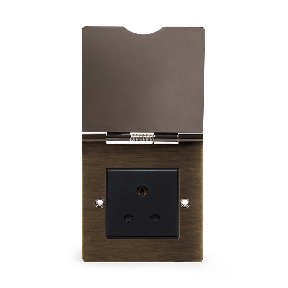 Soho Lighting Antique Brass 5 Amp Floor Socket 1Gang Blk Ins - Size: 86mm x 86mm x 3.5mm