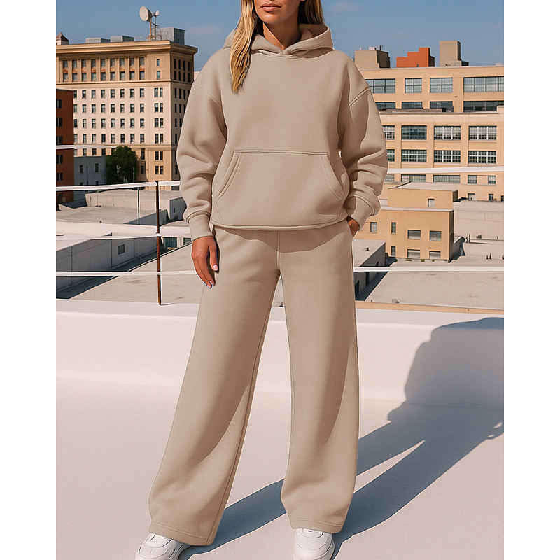 Women's Tracksuit Sweatpants Sportswear Hooded Solid Colored Clothing Suit Fall Winter Black White Outdoor Travel Sports Fashion Long Sleeve Sport Activewear Micro-elastic Loose Fit