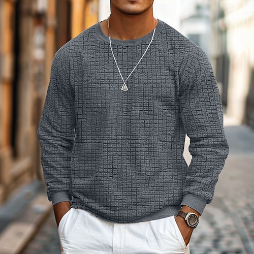 Per uomo Maglietta Waffle Maglietta Manica Lunga Girocollo Inverno Primavera Autunno Tinta unica Tradizionale / Vintage Girocollo All'aperto Casa Sport Outdoor Esercito verde Grigio scuro Nero
