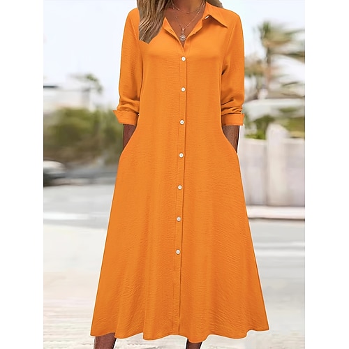 Per donna Abito Midi Abito Camicia Abito a Tubino Casual Data Vestibilità regolare Tinta unica Manica Lunga Colletto a Camicia Blu Nero Rosso Arancione Primavera Autunno