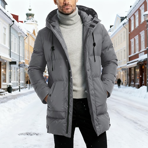 Per uomo Cappotto Invernale Giacca imbottita Imbottito Tasca Poliestere All'aperto Casuale Quotidiano Lungo Moda Streetwear Casual Calore Termico Inverno Tinta unica Nero Verde militare Grigio Piumino