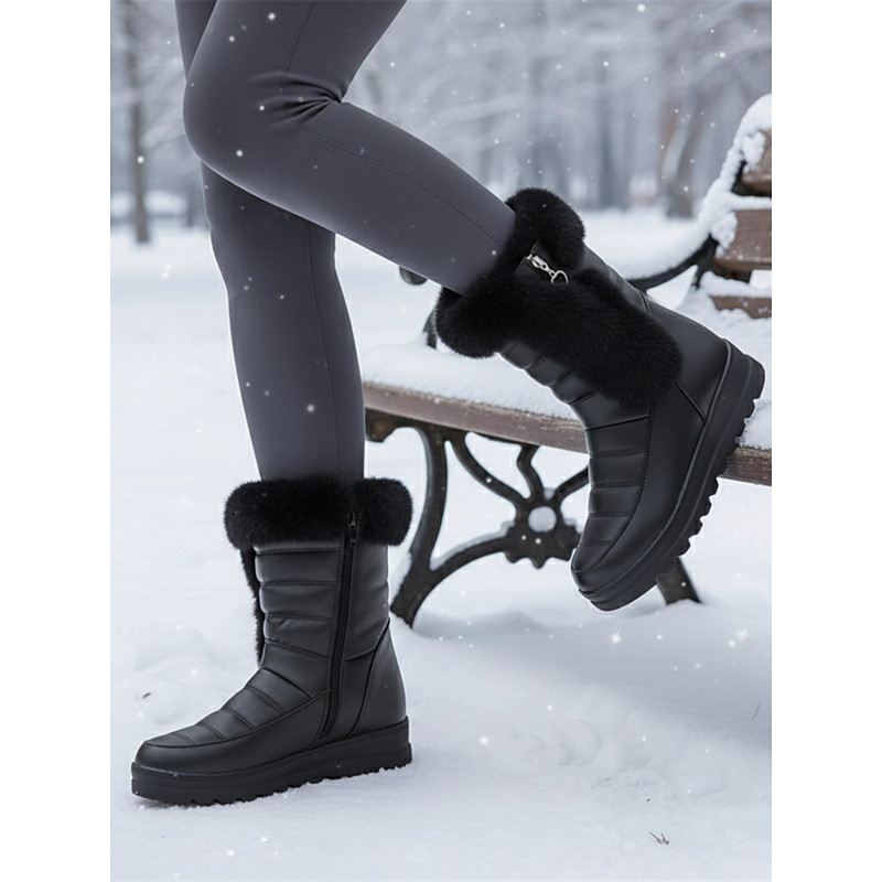 Women's White Waterproof Snow Boots with Faux Fur Trim, Warm Insulated Lining, Non-Slip Sole, and Zip Closure – Perfect for Winter Outdoor Activities