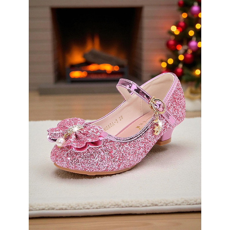Kid's Pink Glitter Mary Jane Shoes with Bow - Perfect for Christmas Party Outfits and Holiday Celebrations