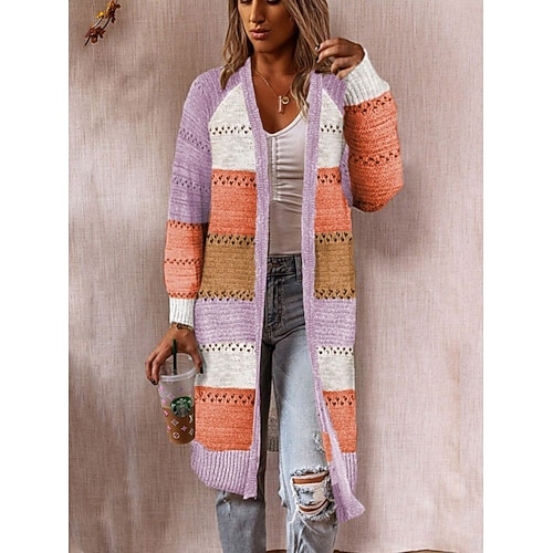 Per donna Felpa Cardigan Elegante Moda Streetwear A righe Aperto davanti Tasca Lavorato a maglia Manica Lunga Top lunghi Maglia All'aperto Quotidiano Weekend Nero Vino Primavera Autunno