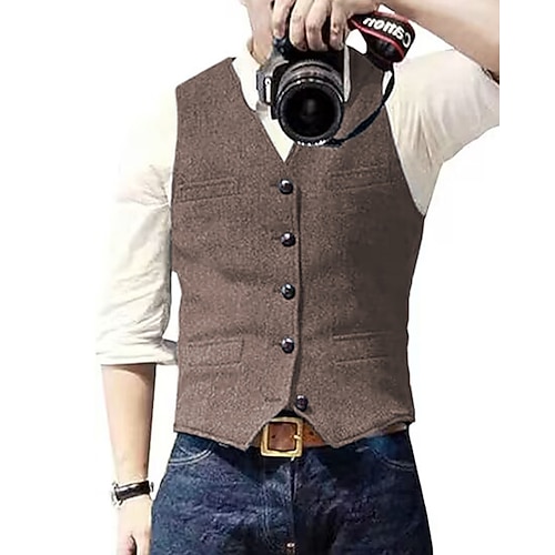 Per uomo Gilet Affari Vacanza Feste Moda Casual Primavera Autunno Tasca Bottoni Poliestere Confortevole Tinta unica Monopetto Un Bottone Scollo a V Vestibilità regolare Blu Argento Nero Vino Gilet
