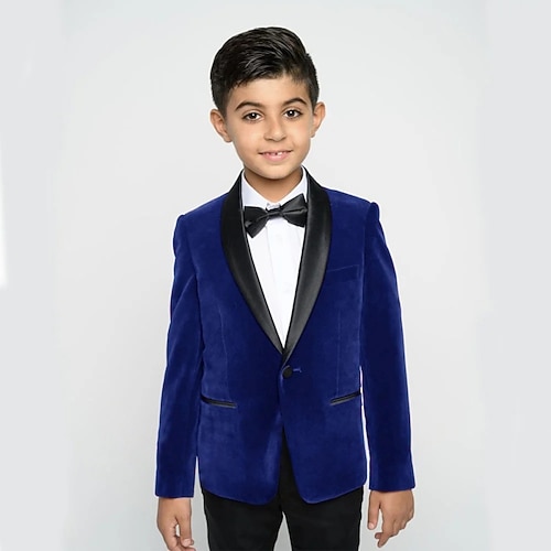 Completo da fedi nuziali per bambini, 3 pezzi, blazer pantaloni cravatta ragazzo abito formale casual esterno festa moda fresco basic tinta unita tasca bottoni blu nero vino poliestere velluto