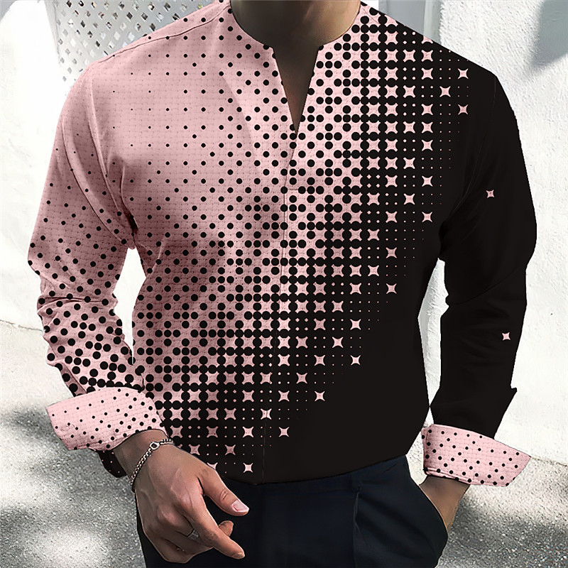 Men's Shirt Dress Shirt Geometric Pattern Outdoor Casual White Pink Blue Green Long Sleeve V Neck Summer Fall Clothing Apparel Print