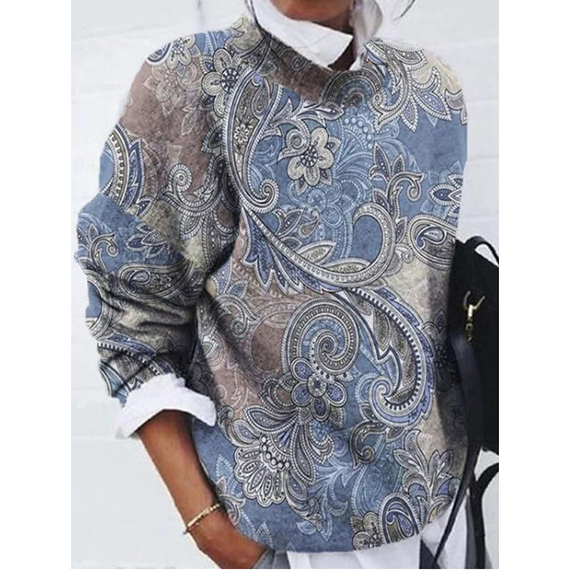 Women's Shirt Blouse Floral Paisley Basic Casual Long Sleeve Crew Neck Regular Tops Daily Print Blue Brown Gray Fall Winter