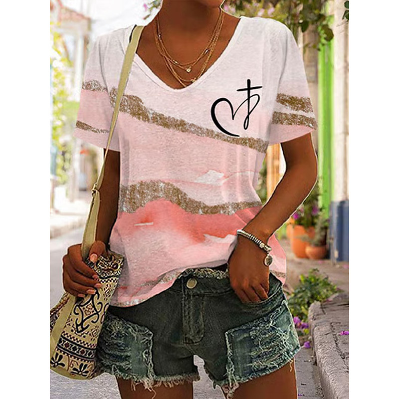 Women's T Shirt Ombre Graphic Vintage Stylish Classic Short Sleeve V Neck Regular Tops Daily Print Pink Summer Spring Fall Winter