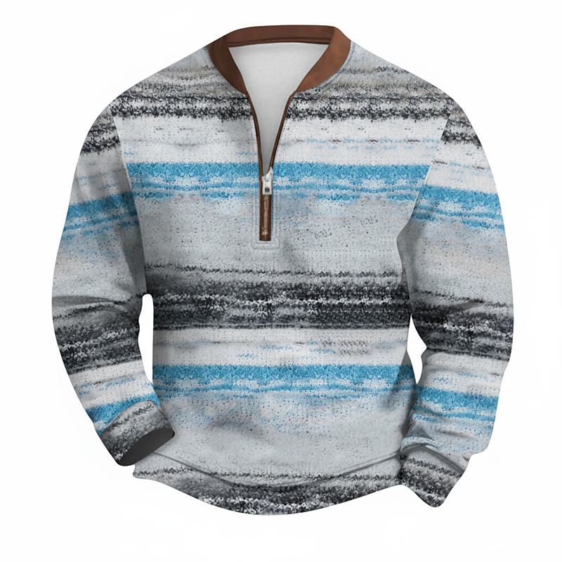 Men's Printing Horizontal Stripes Sweatshirt Sweatshirts Long Sleeve Sweatshirt Quarter Zip Vintage Retro Print Holiday Going out Print Fall Winter