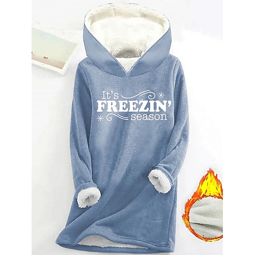 Damen Kapuzenpullover Grafik Buchstabe Warm Lässig Flauschig Langarm Mit Kapuze Lange Oberteile Lässig Sport Druck Rosa Blau Grau Herbst Winter