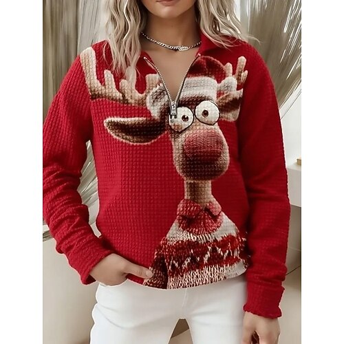 Damen Pullover Sweatshirt Grafik Tier Baum Elegant Aktiv Süß Lange Ärmel Halb Reißverschluss Reguläre Tops Alltagskleidung Lässig Sport Rot Frühling Herbst Winter