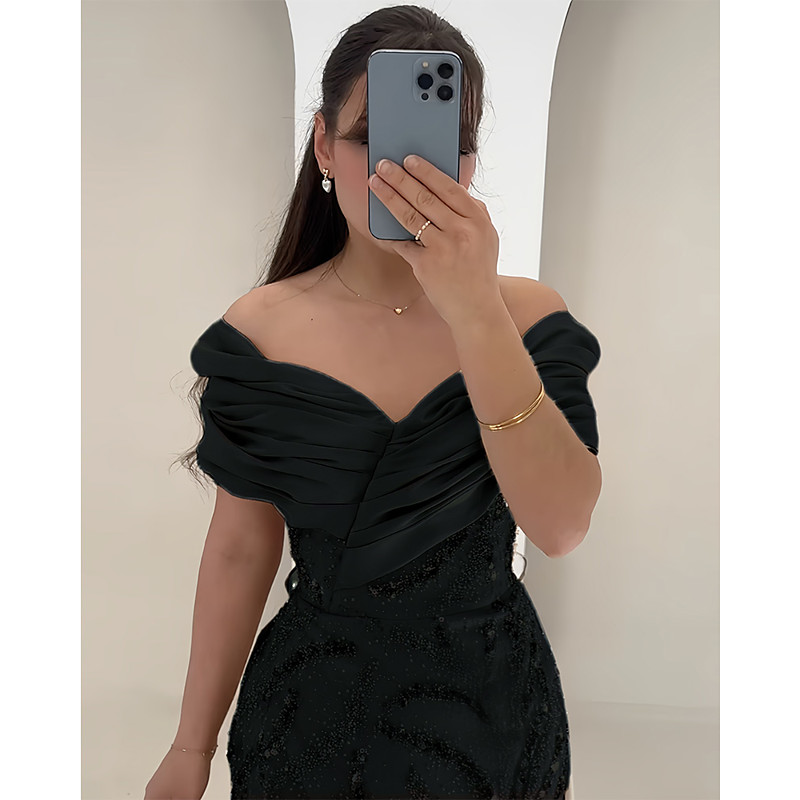 Sheath Column Sweep Brush Train Evening Gown Ball Gown with Overskirt Formal Dress Elegant Long Sleeve Off Shoulder Garden Party Wedding Satin Stretch Crepe with Overskirt
