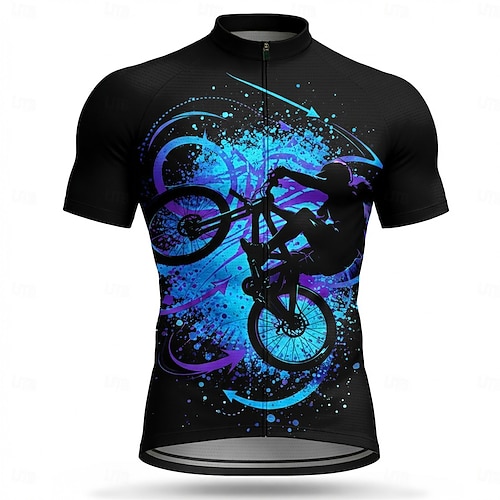 Da uomo Maglia da Ciclismo Astratto Bicicletta Manica Corta Bicicletta Maglia Top con 3 tasche posteriori Resistente ai Raggi UV Asciugatura Rapida Con tasche Cerniera Frontale Gli sport Blu