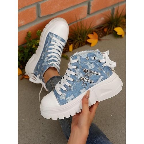 blaue High Top Sneaker für Damen mit Plateausohle und Reißverschluss-Akzenten – trendige Casual Streetwear Schuhe